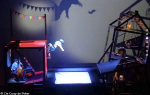 Icare est un éloge poétique du risque. Une impressionnante scénographie, mêlant théâtre, ombres projetées, trampoline, illusions et musique live !
